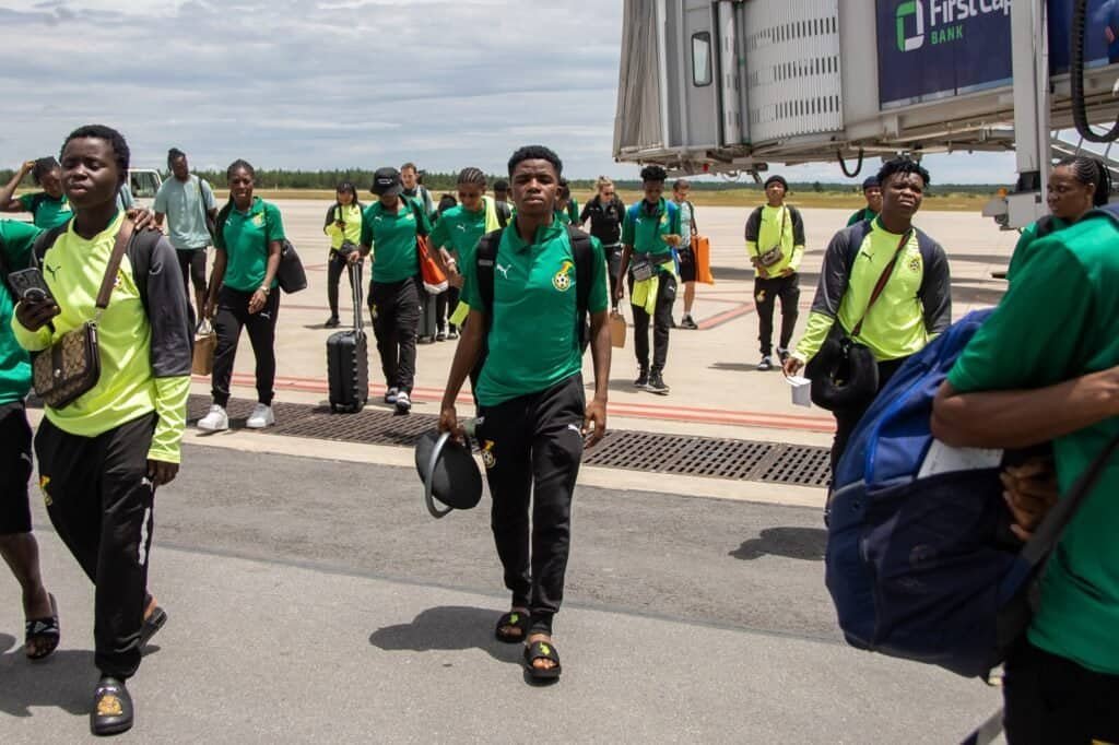 The Black Queens have landed in Ndola for the crucial fixture against Zambia in the Paris 2024 Olympic qualifiers. Departing from Accra on Friday evening via Kenya Airways, the team touched down in the Copper Provincial capital around 12:00 pm on Saturday, ready to face their Zambian counterparts in a high-stakes showdown.